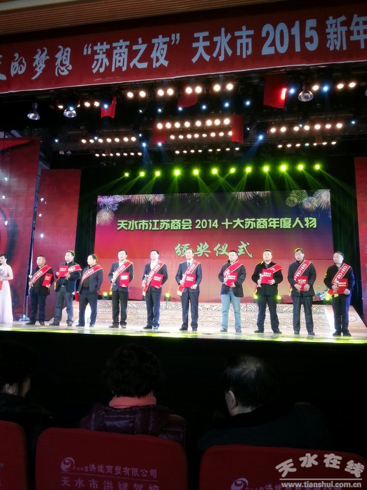 12月25日晚,2014天水市“十大蘇商年度人物”頒獎儀式暨“蘇商之夜”天水市2015新年晚會在秦州劇院隆重舉辦。