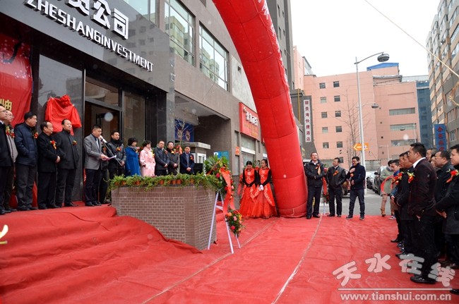2015年1月30日上午,天水陽光麗景灣A座門前,彩球高懸,禮花綻放,在一片喜氣祥和的氣氛中,天水浙商投資公司隆重舉行開業(yè)揭牌儀式。天水市政協(xié)副主席張克強、天水市浙商投資公司董事長方正偉先生為公司開業(yè)揭牌。