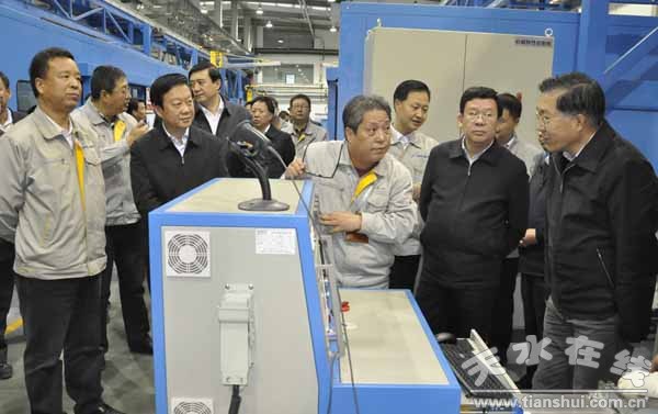 天水市委副書(shū)記、市長(zhǎng)楊維俊,市委常委、政法委書(shū)記趙衛(wèi)東,省質(zhì)量技術(shù)監(jiān)督局局長(zhǎng)馬平及天水市質(zhì)量技術(shù)監(jiān)督局局長(zhǎng)王宏瑋等相關(guān)部門(mén)負(fù)責(zé)人;長(zhǎng)城電工董事長(zhǎng)楊林,總經(jīng)理張希泰,副總經(jīng)理、總工程師張建成陪同檢查。