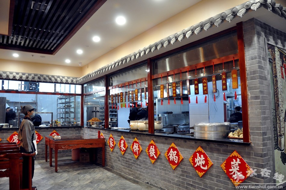 頗有韻味的仿古玻璃窗、別有新意的店面牌匾,中式又現(xiàn)代的店堂裝修,為麥積區(qū)埠南路增添了一道亮麗的商業(yè)風(fēng)景與誘人的美食去處。