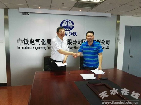長開廠公司黨委書記、常務(wù)副總經(jīng)理郭滿元、中鐵電氣化局國際工程公司副總經(jīng)理出席雙方簽約儀式并簽字。