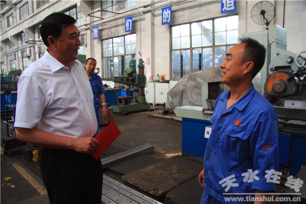 6月24日下午,天水市委常委、政法委書記趙衛(wèi)東在市企業(yè)工委書記、市工信委黨委書記主任王祥林的陪同下,深入到天水鍛壓機(jī)床(集團(tuán))有限公司第一聯(lián)合分廠生產(chǎn)現(xiàn)場慰問困難黨員雷永鋒,送去了黨組織的關(guān)懷和溫暖。