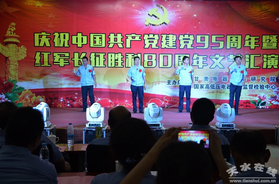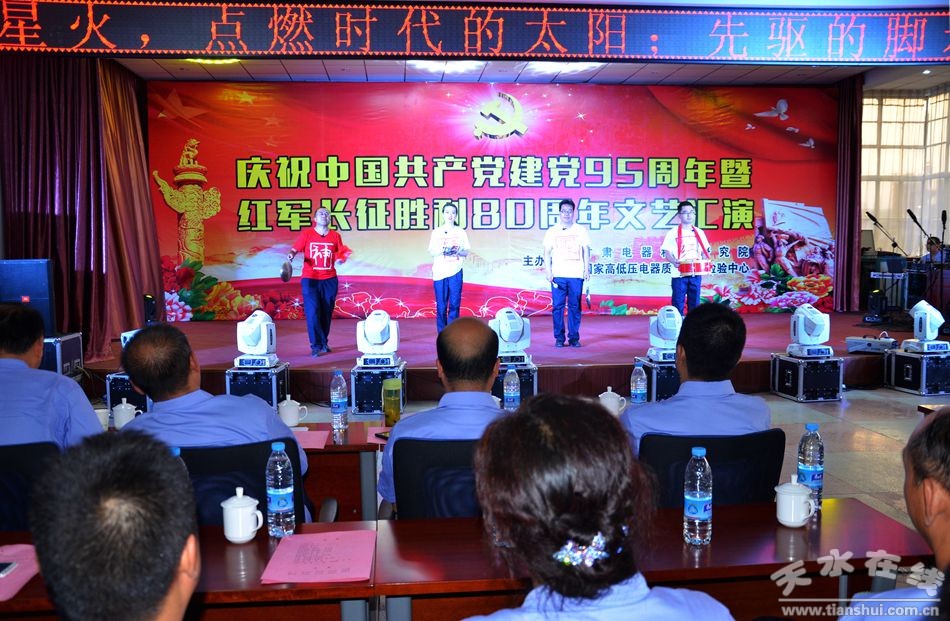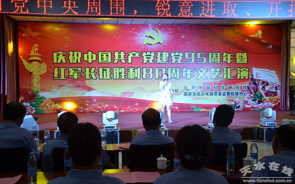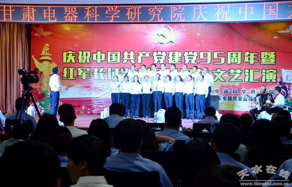 火紅的七月,鮮花怒放,激情的七月,歌聲飛揚。在中國共產(chǎn)黨成立95周年華誕來臨之際,7月1日晚,甘肅電器科學研究院的全體職工歡聚一堂、載歌載舞,隆重舉行“慶祝建黨95周年暨紅軍長征勝利80周年文藝匯演”。公司員工及家屬,長期以來為電科院的發(fā)展出謀劃策、辛勤付出的專家顧問等300多人觀看了演出。