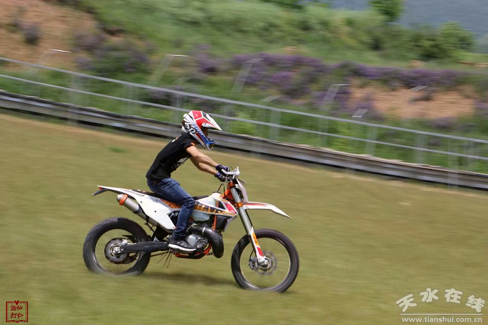 天水市麥積山滑雪場(chǎng)夏季草場(chǎng)長(zhǎng)勢(shì)良好,路況地形多變,對(duì)騎行愛(ài)好者來(lái)說(shuō)既能達(dá)到騎行的樂(lè)趣,也能挑戰(zhàn)自己的騎行水平。當(dāng)天,騎行愛(ài)好者們各自駕駛愛(ài)車,在天然賽道上來(lái)回奔馳,其中一些愛(ài)好者憑借高超的駕駛技術(shù)表演花式技巧,驚險(xiǎn)刺激的場(chǎng)面引的現(xiàn)場(chǎng)觀眾叫好聲,掌聲不斷。來(lái)自張家川縣的騎行愛(ài)好者表示:“騎行一路,麥積山景區(qū)石峽深邃、幽谷含秀,景觀多變。麥積山滑雪場(chǎng)內(nèi)山勢(shì)坡陡緩急適中,是絕佳的摩托車戶外運(yùn)動(dòng)場(chǎng)所!