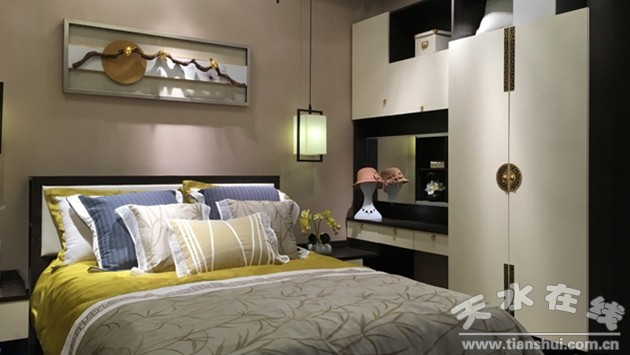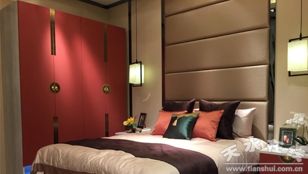 新中式臥房秉承了傳統(tǒng)古典風格的典雅和華貴,同時加入了許多現(xiàn)代風格元素。在配飾的選擇方面更為簡潔,舍棄了過多奢華的裝飾,更加精準流暢地渲染出傳統(tǒng)文化中的精髓風骨,使整個居室在濃濃古韻中縈繞了幾許現(xiàn)代氣息。