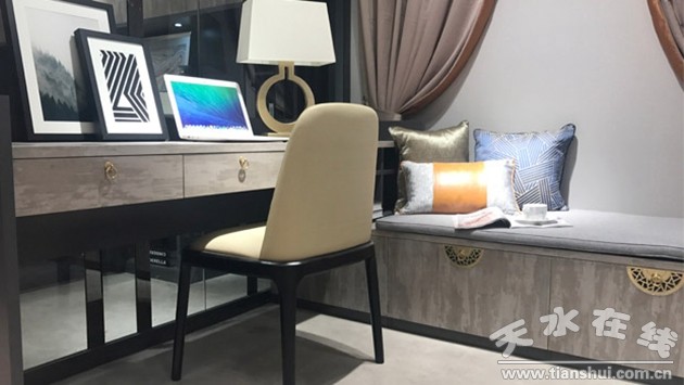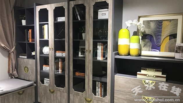 一個好的書房,可以讓你才思泉涌,創(chuàng)意無限。聯(lián)邦高登新中式2.0系列的書房突破傳統(tǒng)的配色,整體以油彩灰與太空灰同色系搭配為主色,極大體現(xiàn)西方現(xiàn)代主義的理性與內(nèi)斂,精巧設計的銅質拉手在平靜的灰色下流動,和諧而舒適。磨砂玻璃門作為隔斷臥室與書房的隔斷,將家裝層次感體現(xiàn)得淋漓盡致。