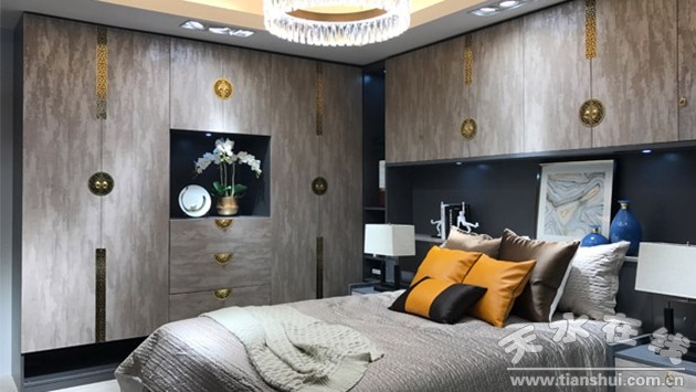 意境系列臥室整體呈現(xiàn)大氣深邃的無雙國色氣勢。在色彩選擇上打破繁雜的顏色,使用高級的同色系搭配法則,以全新視覺配色展示東方禪意與西方設計融合的魅力。精致的配件在硬朗的工業(yè)風油彩灰中注入柔和感。