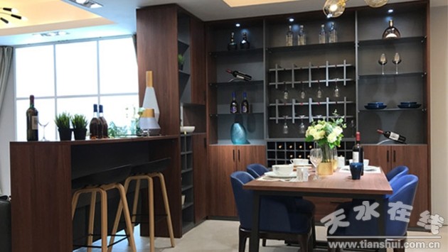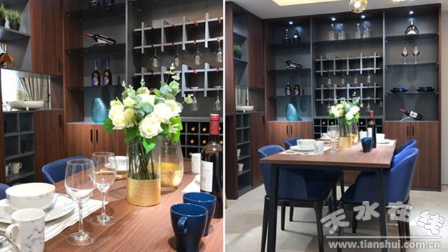 悠閑的時候在吧臺處隨意挑選一瓶美酒,小酌一杯,和朋友聊聊心事談?wù)勌欤柚埔庹f出埋在心底的話,簡單生活也浪漫而有情調(diào)。新胡桃餐桌搭配時尚美觀,傳達(dá)出簡約生活的訴求。在這溫馨的環(huán)境里品嘗美食,美好從視覺蔓延到味覺。