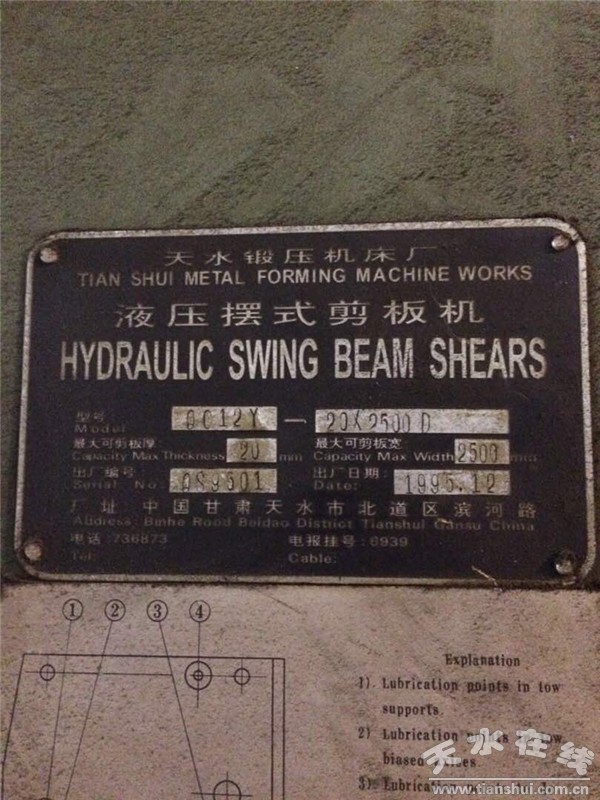 (2017年 科威特新客戶發(fā)來(lái)的天水鍛壓1995年出口去科威特,仍在另一家科威特工廠使用中的QC12Y-20X2500D剪板機(jī)。標(biāo)牌上的出廠日期“1995.12”和 “380V,3相,50Hz”的銘牌標(biāo)識(shí)仍清晰可見(jiàn)。)