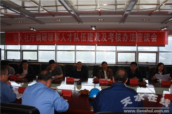甘肅省人社廳黨組成員、副廳長閆敬明,省人社廳專技處副處長胡曉玲,省科技廳基礎研究(科技人才處)處處長梁云升,省工信廳人事處處長李靖紅,省科技技術(shù)情報研究所(省科技技術(shù)發(fā)展戰(zhàn)略研究院)所長、研究員杜英,省委組織部人才工作處干部許力斌,省人社廳專技處干部牛洪亮及其天水市人社局局長李海成和市委組織部人才科科長魏志剛等一行深入到天水鍛壓機床(集團)有限公司通過專題座談、聽取匯報、個別訪談等方式進行了調(diào)研,并廣泛聽取了天水鍛壓用人機制和領軍人才使用的寶貴意見。