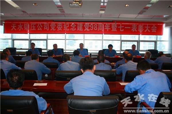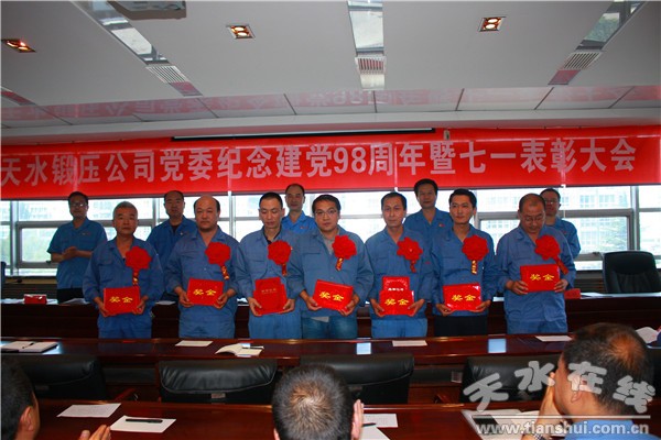 2019年7月1日下午,天水鍛壓機(jī)床(集團(tuán))有限公司黨委在三樓會(huì)議室隆重召開(kāi)了紀(jì)念建黨98周年暨“七一”表彰大會(huì),公司領(lǐng)導(dǎo)、各支部書(shū)記、支部委員、受表彰對(duì)象和黨員代表共80多人參加了會(huì)議。會(huì)議舉行了新黨員入黨宣誓儀式,全體黨員重溫入黨誓詞;表彰獎(jiǎng)勵(lì)了2個(gè)先進(jìn)黨支部、7名優(yōu)秀共產(chǎn)黨員、2名優(yōu)秀黨務(wù)工作者;優(yōu)秀代表進(jìn)行大會(huì)交流發(fā)言。最后公司董事長(zhǎng)、黨委副書(shū)記陳鴻作了發(fā)表了《不忘初心、牢記使命、開(kāi)啟天水鍛壓改革發(fā)展新征程》講話(huà)。