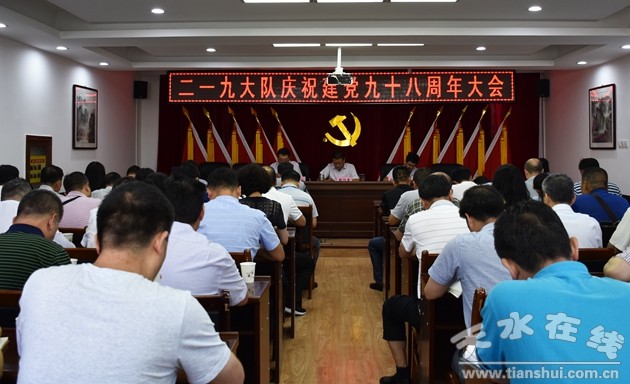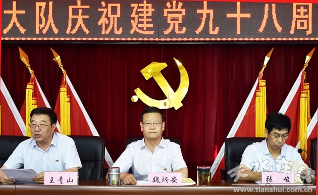 7月1日上午八時(shí),在莊嚴(yán)的國(guó)歌聲中,慶祝建黨九十八周年大會(huì)在辦公室五樓會(huì)議室隆重開幕。機(jī)關(guān)全體黨員、新黨員、各黨支部書記共七十余人參加會(huì)議,會(huì)議由大隊(duì)黨委副書記、紀(jì)委書記王青山同志主持。