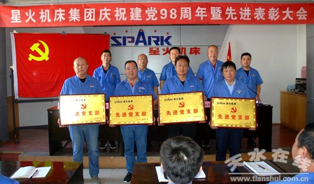 7月1日,在中國共產黨建黨98周年之際,星火機床公司在大會議室隆重召開慶祝建黨98周年暨2018-2019年度先進表彰大會,紀念黨的生日,重溫入黨誓詞,為獲得示范黨支部及先進黨支部的集體授牌,向李清錄等16名被評為優(yōu)秀共產黨員稱號的黨員頒獎。黨委專職副書記、紀委書記、星火機床集團公司副總經理、工會主席蔣俊發(fā)表講話,對下一步黨建工作提出要求。