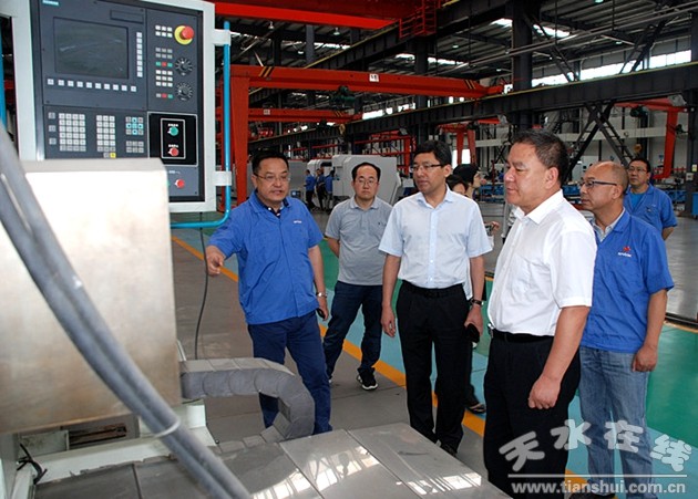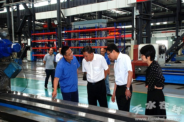 7月16日,甘肅省發(fā)改委外資處處長劉軍,國際產(chǎn)能辦主任郭潔,外資處調(diào)研員劉紅;甘肅省商務(wù)廳外經(jīng)處副處長張志,甘肅省政府國資委外經(jīng)處副處長任則西以及省發(fā)改委外資處干部白天翔一行,在天水市政府項(xiàng)目辦主任、市發(fā)改委副主任李鳳奇的陪同下,來星火機(jī)床公司調(diào)研境外投資情況。星火機(jī)床集團(tuán)公司董事長蔣保權(quán)、副總經(jīng)理蔣俊接待并陪同參觀星火工業(yè)園各分廠。