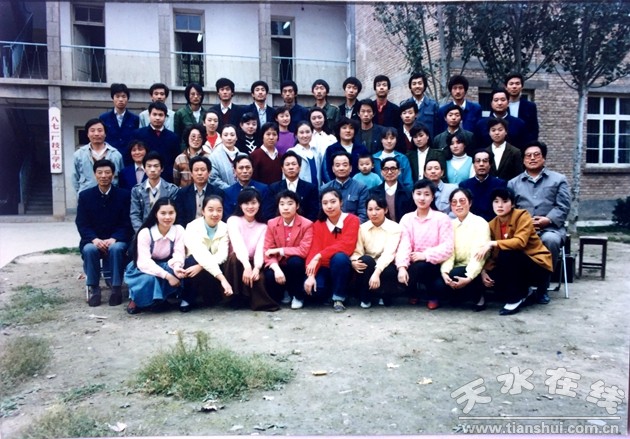 在秦安兩年的學(xué)習(xí)時(shí)間很快就結(jié)束了。一直沒(méi)去過(guò)工廠(chǎng)后面葉家堡,縣城遠(yuǎn)處的桃花溝倒是去了,是學(xué)校組織春游的時(shí)候,男同學(xué)騎著自行車(chē)馱著女同學(xué),熙熙嚷嚷,很是熱鬧。去食堂打飯,手中握著貳分、伍分、一角、貳角的飯票,來(lái)到打飯窗口,早有排好長(zhǎng)隊(duì)的“巨龍”守候在此,職工、學(xué)生聚集在敞亮的餐廳,享用著巨大蒸籠蒸就的饅頭和大鍋熬制的飯菜;經(jīng)常惦記著剛剛出鍋的面包、油條,還有單位給我們學(xué)生發(fā)的柑桔,大包小包,不亦樂(lè)乎。晚飯后,一群群地到天光子弟校后面的楊家溝散步,順著窄窄的土路,一直走到盡頭,只記得那里生長(zhǎng)著一片片的高高的蘆葦草,空氣清新。周未回不了家,便和同學(xué)三個(gè)兩個(gè),相約去秦安縣城逛街,沒(méi)有公交車(chē),都喜歡步行走著去,縣城的熱鬧,不及天水市的繁華,去瞅一瞅,順便吃一碗涼粉,一個(gè)蕎麥面油圈,或者來(lái)份油潑蒜面,味蕾的享受才是逛縣城的目的。有次周未,約了廠(chǎng)里一位姓謝的攝影師,給我們一幫外招女生拍了很多張黑白色的照片,教學(xué)樓前、麥田里、大樹(shù)旁,定格在那時(shí)的青春,至今回味無(wú)窮。三層樓高的教學(xué)樓旁邊,有兩排大瓦磚砌的平房,便是男生、女生們的宿舍,宿舍距離工廠(chǎng)三里,所以叫三里鋪。我們女生12個(gè)人,在一間安放著上下床的屋子里住著,晚上有時(shí)會(huì)傳出偷吃零食的“咔咔”聲,聽(tīng)得人口水往下咽。宿舍旁邊是一條水渠,水渠上方是蘋(píng)果園,瓜果成熟的季節(jié),果園里總是上演著一幕幕偷桃子、偷蘋(píng)果被看園人追打的場(chǎng)景。老師語(yǔ)重心長(zhǎng)的勸導(dǎo),我們?nèi)慨?dāng)成耳旁風(fēng),至今流傳著偷果子的英雄傳說(shuō)。年輕的我們,有著旺盛的精力和面對(duì)生活享受不完的樂(lè)趣。五里路外有條葫蘆河,男生鬧了矛盾,約上一架,葫蘆河畔是理想的較量之地,打得灰頭土臉鼻青臉腫,還沒(méi)決出勝負(fù),就被觀(guān)戰(zhàn)的同學(xué)拉開(kāi)了......提起秦安這個(gè)縣城,留下過(guò)歡笑,留下過(guò)眼淚,承載過(guò)我們的青春記憶,每每想起,歷久彌新。