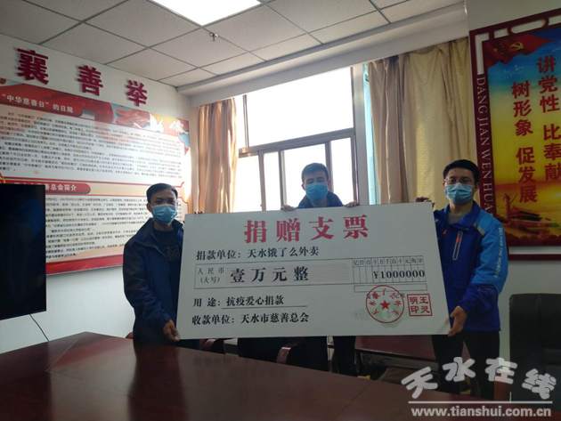 2月12日,天水市沃倫商貿有限公司餓了么一群外賣小哥匆匆趕到天水市慈善總會將他們募集的1萬元善款交到市慈善總會工作人員手中,助戰(zhàn)疫情防控工作。