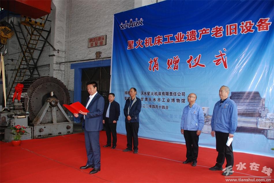 他說,今天,我們捐贈的TX-1001牙條車床是星火機床公司1973年自行研發(fā)設計的專用機床,用于滿足當時的星火機床廠生產需要。這臺設備為星火機床的發(fā)展立下了汗馬功勞,見證了星火機床從無到有,從小到大的風雨歷程,體現了星火人有條件要上,沒有條件創(chuàng)造條件也要上的干事創(chuàng)業(yè)精神,可以說這臺設備濃縮了星火發(fā)展歷史,也濃縮了天水裝備制造業(yè)的發(fā)展歷史。