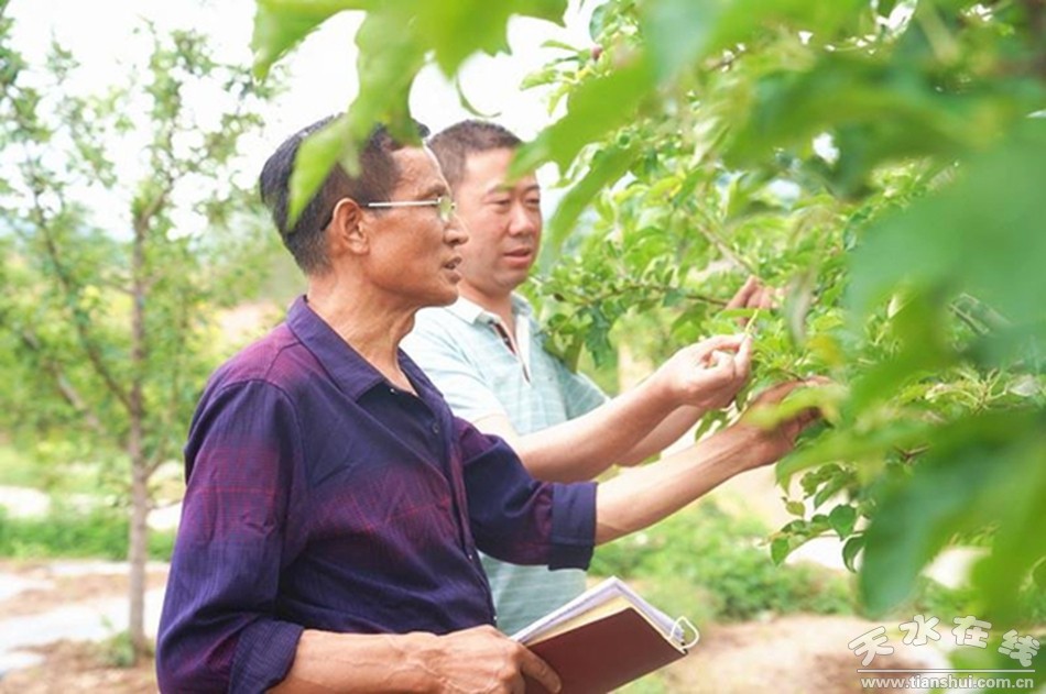“蘋果受災(zāi),鄉(xiāng)親們傷不起,我們這幾天一直在蘋果園為大家培訓種植的技巧,把損傷降到最低!倍移禾O果種植面積達1200畝,今年新建的有400畝左右,村民收入來源70%是蘋果的種植。