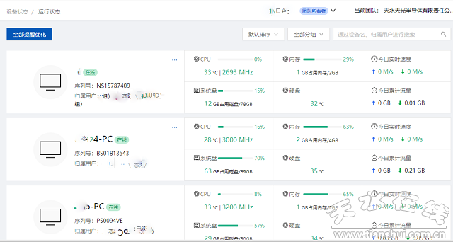 該平臺可對企業(yè)IT資產(chǎn)統(tǒng)一高效管理,通過管理后臺IT管理人員可對企業(yè)接入終端的健康狀況進行總覽,實時監(jiān)測設(shè)備CPU、內(nèi)存、硬盤、溫度、占用、網(wǎng)絡(luò)速度等指標數(shù)據(jù)。最大程度避免設(shè)備故障、網(wǎng)絡(luò)卡頓,病毒攻擊等事件發(fā)生。