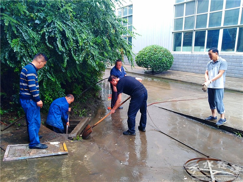 汛情就是命令,防汛就是責(zé)任。公司黨委副書記、工會主席白峰第一時(shí)間趕往現(xiàn)場,并與聞訊趕來的物業(yè)公司副經(jīng)理樊榮奇、劉鋼,物業(yè)公司職工謝自樂,保衛(wèi)部職工司琪一起,迅速掌握現(xiàn)場情況,并制定了冒雨疏通排水管道的應(yīng)急預(yù)案。
