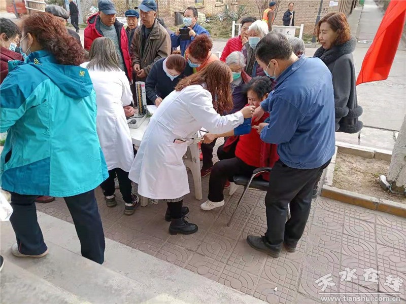 家園內超市門口,也是一片熱鬧景象。星火醫(yī)院的醫(yī)務工作者開展義診活動,為生活區(qū)的老人們量血壓、測血糖,開展健康咨詢。