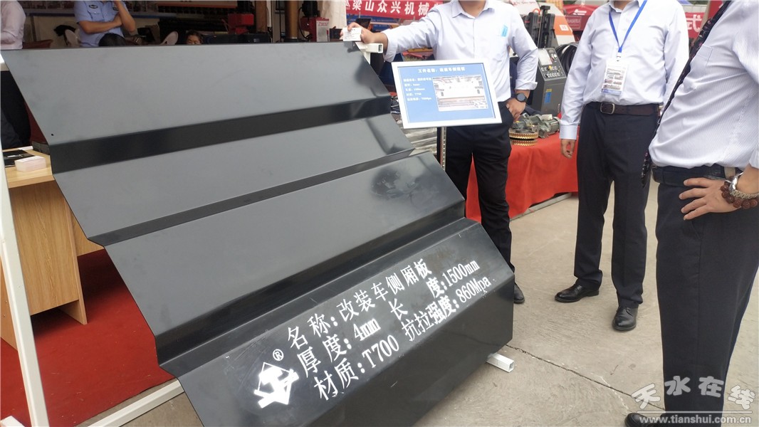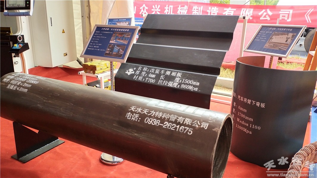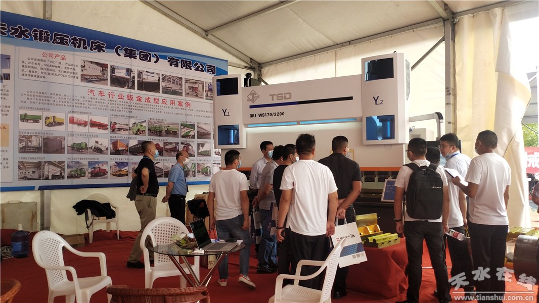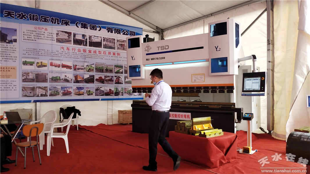天水鍛壓機床(集團)有限公司攜WS170/3200高精度伺服泵控數(shù)控折彎機,汽車行業(yè)用Z型模具,V型模具,側(cè)箱板專用模具以及汽車行業(yè)典型工件改裝車側(cè)箱板、汽車吊臂下彎板和大口徑直縫埋弧焊管參加了展會。展會第一天就引起了汽車參展企業(yè)的廣泛關(guān)注,尤其對專用模具和汽車行業(yè)典型工件產(chǎn)生了濃厚興趣。