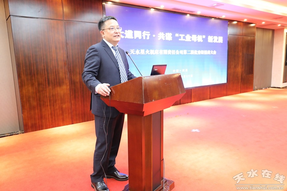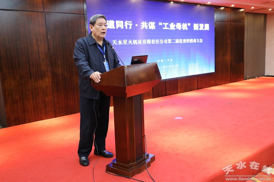 星火機床集團公司黨委書記、董事長蔣保權(quán)在大會上致辭,對各位優(yōu)秀經(jīng)銷商相聚天水,共謀發(fā)展表示熱烈歡迎。他向與會人員介紹了企業(yè)基本情況、近兩年發(fā)展變化、項目建設和發(fā)展規(guī)劃后說,企業(yè)與經(jīng)銷商是魚水關(guān)系,也是一家人,希望大家攜起手來,共同努力,共同發(fā)展。