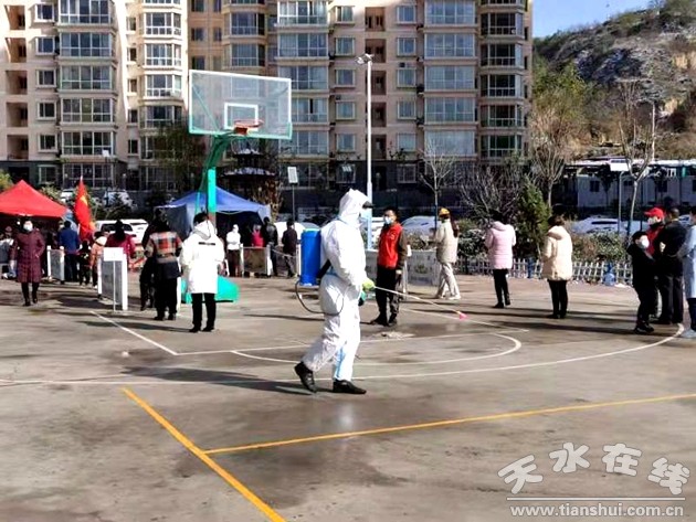 附件公司黨員職工組成抗疫突擊隊(duì),為“黃碼”人員進(jìn)行核酸檢測清掃環(huán)境、搭帳篷、擺桌子,保障照明,維持秩序。
