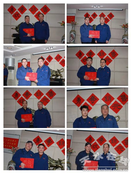 隨后,集團(tuán)公司黨委書記、董事長陳鴻,副董事長關(guān)尚虎,總經(jīng)理蔣文凱,黨委副書記、紀(jì)委書記、工會主席白峰,副總經(jīng)理王東明、楊軍、劉文革分別為在2021年度銷售工作中表現(xiàn)突出的李永忠、陳志剛、張景峰、田磊、周小軍、竇高強(qiáng)、姚青云、楊永春、胡杰9名同志頒發(fā)了獎金,并對銷售員家屬代表進(jìn)行了慰問。