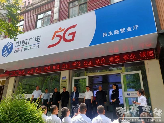 發(fā)布儀式結(jié)束后,出席活動的領(lǐng)導為中國廣電天水市分公司5G營業(yè)廳進行了揭牌,實地體驗了營業(yè)廳192友好用戶預約選號活動。