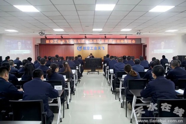 11月15日上午,航空工業(yè)天水飛機(jī)工業(yè)有限責(zé)任公司召開黨委擴(kuò)大會(huì),專題學(xué)習(xí)習(xí)近平總書記給航空工業(yè)沈飛“羅陽青年突擊隊(duì)”隊(duì)員的回信。公司黨委書記、董事長田維軍主持會(huì)議并傳達(dá)習(xí)近平總書記重要回信內(nèi)容。
