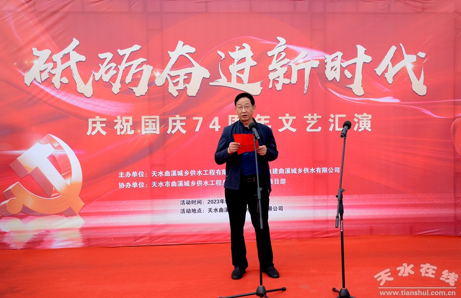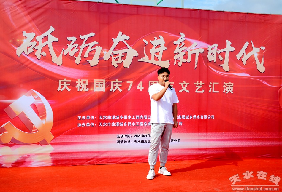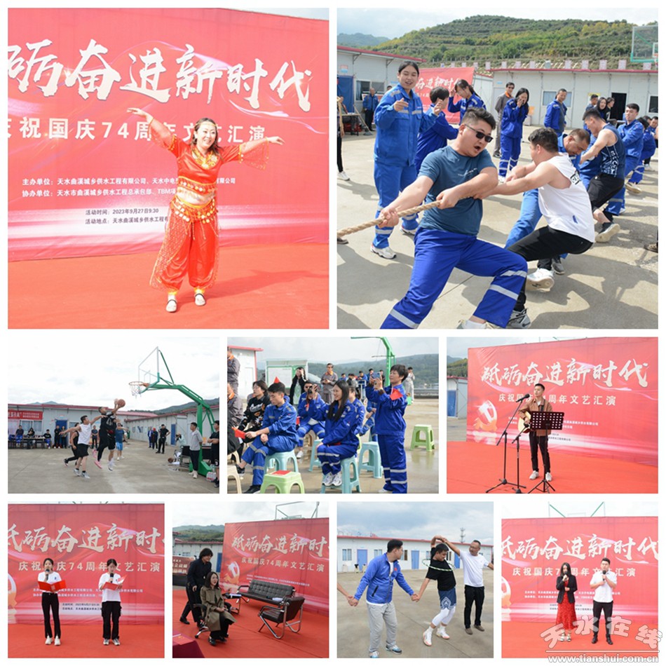為進(jìn)一步振奮精神、鼓舞干勁,豐富職工精神生活,充分調(diào)動(dòng)生產(chǎn)一線干部職工的工作積極性,營(yíng)造喜慶、熱烈的國(guó)慶、中秋佳節(jié)氛圍,9月27日,天水曲溪城鄉(xiāng)供水工程有限公司和天水中電建曲溪城鄉(xiāng)供水工程有限公司組織開展“砥礪新征程、奮進(jìn)新時(shí)代”慶祝國(guó)慶74周年文藝匯演和體育競(jìng)賽活動(dòng)。