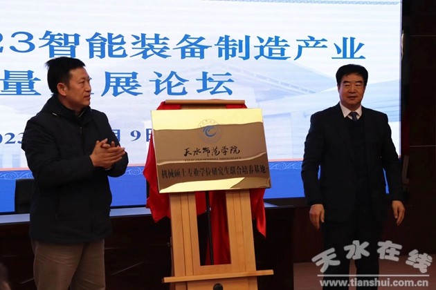 劉勝代表星火機(jī)床公司與天水師范學(xué)院簽署《機(jī)械碩士專業(yè)研究生聯(lián)合培養(yǎng)協(xié)議》,并與天水師范學(xué)院院長(zhǎng)汪聚應(yīng)為星火機(jī)床公司與天水師范學(xué)院“機(jī)械碩士專業(yè)學(xué)位研究生聯(lián)合培養(yǎng)基地”揭牌。星火機(jī)床公司專用機(jī)床總設(shè)計(jì)師董全宏被聘為天水師范學(xué)院機(jī)械專業(yè)研究生行業(yè)導(dǎo)師,汪聚應(yīng)向其頒發(fā)了聘書。