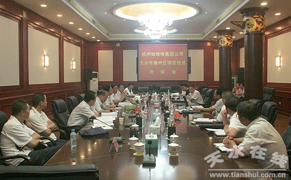 6月23日,應(yīng)市、區(qū)兩級(jí)黨委、政府的邀請(qǐng),杭州娃哈哈集團(tuán)公司對(duì)外投資部部長(zhǎng)顧小洪一行來(lái)我市秦州區(qū)考察、洽談項(xiàng)目投資事宜。天水市委常委、紀(jì)委書記、副市長(zhǎng)楊維俊,市委常委、秦州區(qū)委書記張健陪同考察并出席座談會(huì)。