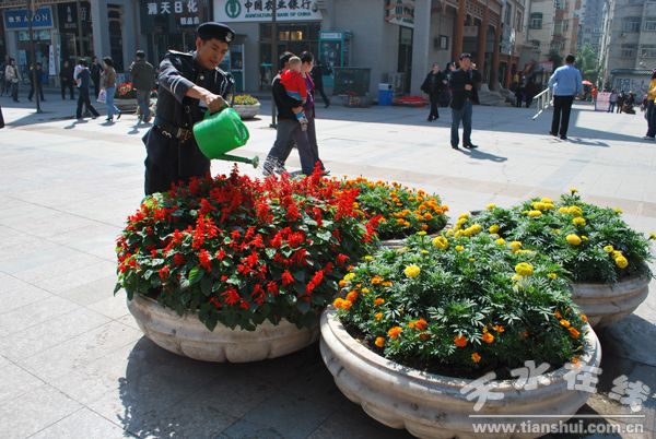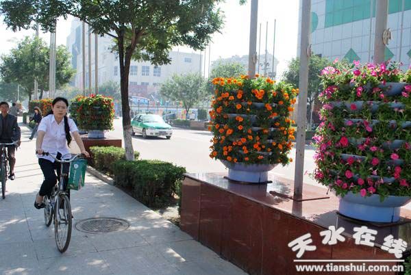 秦州區(qū)政府副區(qū)長趙耀雄告訴記者,為了喜迎國慶,秦州區(qū)改變往日的慣例,提前半個多月就布展,在秦州城區(qū)民主路、建設(shè)路、環(huán)城中路、中心廣場用鮮花配方立體造型,并利用現(xiàn)有燈桿、各種護欄、支架等設(shè)施擺放造型獨特的花柱;環(huán)衛(wèi)部門針對城區(qū)主干道、中心廣場、中華東西路的垃圾桶、垃圾箱進行修復(fù)、油漆,對老化、殘損果皮箱及時進行了更換;市政管理部門對城區(qū)破損的路面及時進行了整修養(yǎng)護。