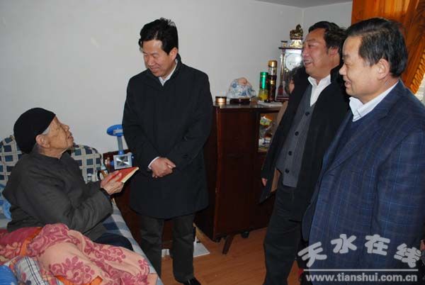 (秦州區(qū)委宣傳部 辛志鋒)2月1日,天水市委常委、秦州區(qū)委書記張明泰,區(qū)人大常委會(huì)主任楊虎林,區(qū)委副書記王小林,區(qū)人大常委會(huì)副主任陳蓉華帶領(lǐng)區(qū)委辦、區(qū)人大辦、組織、民政、街道辦事處等相關(guān)部門負(fù)責(zé)人,走訪慰問了部分城市困難居民、優(yōu)撫對(duì)象、高齡老人、困難黨員和拔尖人才,為他們送去慰問金和節(jié)日的問候,讓寒冷的冬天增加了不少暖意。