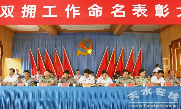 。ㄇ刂輩^(qū)外宣辦 辛志鋒)7月15日下午,秦州區(qū)召開雙擁工作命名表彰大會(huì)。會(huì)議主要內(nèi)容是總結(jié)近年來該區(qū)雙擁工作取得的成績和經(jīng)驗(yàn),安排部署今后一個(gè)時(shí)期雙擁創(chuàng)建工作。會(huì)議還對做出優(yōu)異成績的玉泉鎮(zhèn)等13個(gè)鄉(xiāng)鎮(zhèn)和街道辦事處、玉泉鎮(zhèn)暖和灣村等32個(gè)擁軍優(yōu)屬模范村,西關(guān)街道辦事處西站社區(qū)等16個(gè)擁軍優(yōu)屬模范社區(qū),區(qū)教育局等24個(gè)擁軍優(yōu)屬先進(jìn)單位,68202部隊(duì)42分隊(duì)等9個(gè)擁政愛民先進(jìn)單位,班來存等24名雙擁先進(jìn)個(gè)人予以表彰。