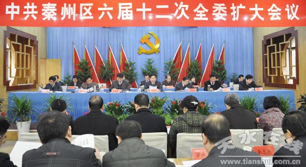 (秦州區(qū)外宣辦 辛志鋒)12月8日,中共秦州區(qū)委六屆十二次全委擴(kuò)大會(huì)議隆重召開(kāi)。會(huì)議主要任務(wù)是認(rèn)真?zhèn)鬟_(dá)貫徹十七屆五中全會(huì)精神和省、市領(lǐng)導(dǎo)干部研討班暨全委擴(kuò)大會(huì)議精神,全面總結(jié)“十一五”期間的各項(xiàng)工作,分析當(dāng)前和今后一個(gè)時(shí)期發(fā)展面臨的形勢(shì),科學(xué)謀劃“十二五”發(fā)展大計(jì),明確方向,把握重點(diǎn),搶抓機(jī)遇,動(dòng)員全區(qū)上下切實(shí)把思想統(tǒng)一到區(qū)委、區(qū)政府的決策部署上來(lái),真抓實(shí)干,爭(zhēng)創(chuàng)一流,全力推進(jìn)全區(qū)經(jīng)濟(jì)社會(huì)率先跨越發(fā)展。