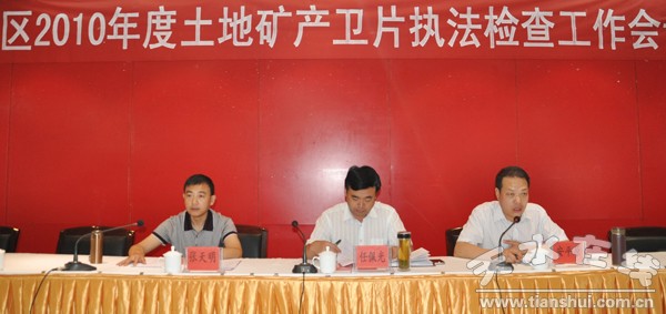 。ㄇ刂輩^(qū)外宣辦 辛志鋒)6月17日上午,秦州區(qū)召開(kāi)2010年度土地礦產(chǎn)衛(wèi)片執(zhí)法檢查工作會(huì),會(huì)議的主要內(nèi)容是分析當(dāng)前全區(qū)土地礦產(chǎn)管理和執(zhí)法工作面臨的形執(zhí),安排部署2010年土地礦產(chǎn)衛(wèi)片執(zhí)法檢查任務(wù),確保全區(qū)土地礦產(chǎn)衛(wèi)片執(zhí)法檢查工作順利通過(guò)國(guó)家和省、市檢查驗(yàn)收,進(jìn)一步提高依法管地用地和礦產(chǎn)資源開(kāi)發(fā)管理水平,更好地服務(wù)和保障全區(qū)經(jīng)濟(jì)社會(huì)又好又快發(fā)展。