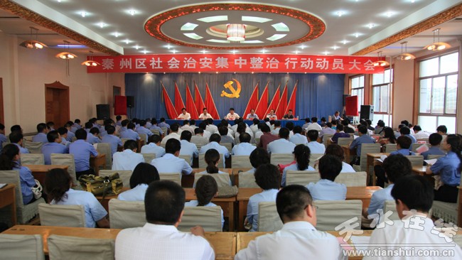 會上,區(qū)委副書記、區(qū)長周繼軍作了動員講話,副區(qū)長茍鐘靈宣讀了《秦州區(qū)社會治安集中整治行動實施方案》。會議由王萬珍主持。