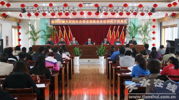 (秦州區(qū)外宣辦 劉可)9月21日上午,秦州區(qū)人力資源和社會(huì)保障局在區(qū)地稅局七樓會(huì)議室舉行了城鄉(xiāng)居民社會(huì)養(yǎng)老保險(xiǎn)經(jīng)辦人員業(yè)務(wù)培訓(xùn)班開班儀式,區(qū)城鄉(xiāng)居民社會(huì)養(yǎng)老保險(xiǎn)試點(diǎn)工作領(lǐng)導(dǎo)小組副組長、區(qū)委常委、區(qū)政府副區(qū)長武建成,區(qū)城鄉(xiāng)居民社會(huì)養(yǎng)老保險(xiǎn)試點(diǎn)工作領(lǐng)導(dǎo)小組成員、辦公室主任、區(qū)人社局局長劉睿智出席了開班儀式。區(qū)城鄉(xiāng)居民社會(huì)養(yǎng)老保險(xiǎn)中心工作人員,各鄉(xiāng)鎮(zhèn)、街道(社區(qū))經(jīng)辦人員等共計(jì)120余人參加了培訓(xùn)。開班儀式由區(qū)城鄉(xiāng)居民社會(huì)養(yǎng)老保險(xiǎn)試點(diǎn)工作領(lǐng)導(dǎo)小組成員、辦公室副主任、區(qū)人社局黨委書記、副局長段立建主持。