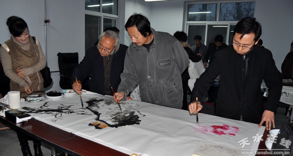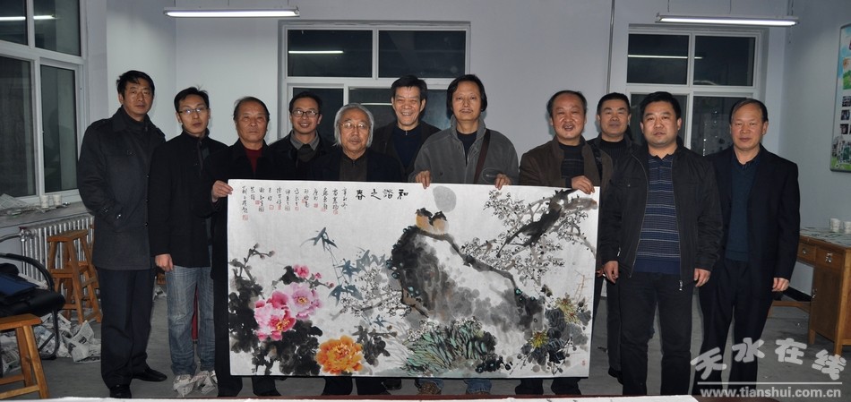 在天雅公司,藝術(shù)家們參觀了該公司的辦公環(huán)境、項目建設(shè)及發(fā)展規(guī)劃。該公司負責(zé)人表示,天雅房地產(chǎn)公司運營十年來,在抓好經(jīng)濟建設(shè)的同時,一直想把文化建設(shè)融入該公司的發(fā)展中,近年來陸續(xù)邀請了一些外地書畫名家來開展藝術(shù)交流,公司準(zhǔn)備盡快成立天雅藝術(shù)交流中心,并愿意通過這次活動,與秦州區(qū)文聯(lián)建立長期合作關(guān)系,對公司的文藝文化工作進行經(jīng)常性的指導(dǎo)和幫助。區(qū)文聯(lián)負責(zé)人表示,文聯(lián)組織有責(zé)任把社會各界的文化文藝工作提升到一個較高的層次,同時幫助包括企業(yè)在內(nèi)的機關(guān)事業(yè)單位搞好文化建設(shè),歡迎天雅藝術(shù)交流中心以團體會員的身份加入秦州文聯(lián)組織,今后要發(fā)揮各自的優(yōu)勢,取長補短,借助中共十七屆六中全會的東風(fēng),共同促進秦州文藝事業(yè)和文化產(chǎn)業(yè)的發(fā)展繁榮。
