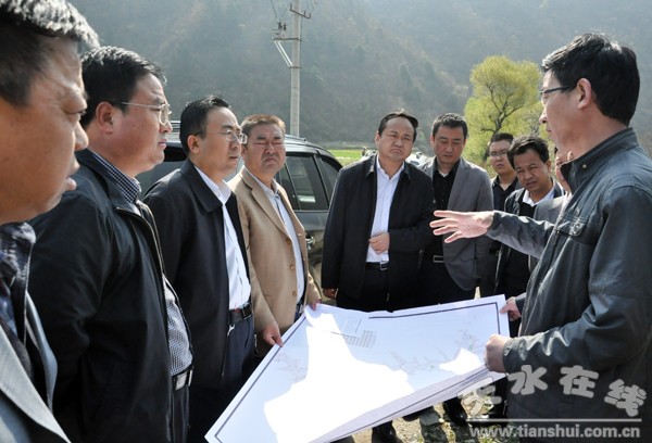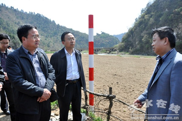 。ㄇ刂輩^(qū)外宣辦 辛志鋒)4月18日,市住建局局長(zhǎng)楊文元、副局長(zhǎng)馬延廣,市自來水公司經(jīng)理王利民、副經(jīng)理程繼軍一行,在秦州區(qū)委常委、政府常務(wù)副區(qū)長(zhǎng)張憲泉以及區(qū)發(fā)改局、水務(wù)局、住建局、娘娘鎮(zhèn)等相關(guān)部門、單位負(fù)責(zé)人的陪同下,深入秦州區(qū)娘娘壩鎮(zhèn)李子園長(zhǎng)河、杜家莊2村就曲溪水庫(kù)淹沒區(qū)移民搬遷有關(guān)事宜進(jìn)行了調(diào)研。同時(shí),對(duì)設(shè)計(jì)水庫(kù)所需數(shù)據(jù)泥砂監(jiān)測(cè)點(diǎn)和料場(chǎng)選址進(jìn)行了查看。