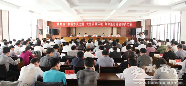 。ㄇ刂輩^(qū)外宣辦 彭高峰)5月11日,秦州區(qū)召開專題會議,安排部署“加強作風(fēng)效能、優(yōu)化發(fā)展環(huán)境”集中整治工作,動員全區(qū)各級黨政機關(guān)及駐區(qū)各單位集中開展活動。