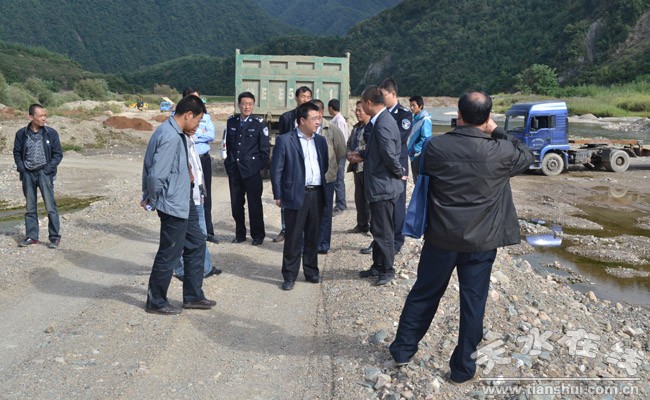 (秦州區(qū)外宣辦 李保懷)9月12日,秦州區(qū)組織區(qū)政府辦、國土、公安、安監(jiān)、環(huán)保、水務(wù)、娘娘壩鎮(zhèn)等相關(guān)單位負(fù)責(zé)人和執(zhí)法人員,深入娘娘壩鎮(zhèn)溝門村對一起無證經(jīng)營、私自開挖河道采砂,侵占村民耕地的采沙場進(jìn)行了查處關(guān)閉。