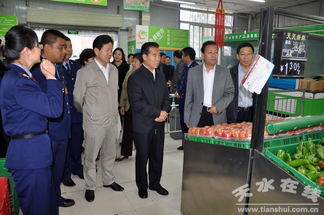 10月11日,市人大常委會主任柴金祥,市人大常委會副主任韓一兵、蕭菡、謝簡平,市人大常委會秘書長張仲康帶領市人大常委會部分組成人員和人大代表赴秦州區(qū),視察了食品安全工作。市委常委、常務副市長郭奇若,市委常委、秦州區(qū)委書記張明泰陪同視察。