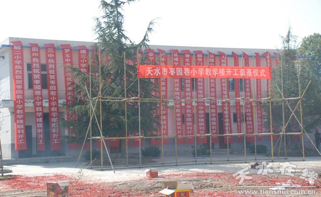 棗園巷小學(xué)創(chuàng)建于1953年,是一所完全小學(xué),占地面積9437平方米,現(xiàn)使用面積6547平方米,現(xiàn)有18個(gè)教學(xué)班,在校學(xué)生1083人,教職工47人。近年來(lái),該校教育教學(xué)質(zhì)量穩(wěn)步提升,特別是在培養(yǎng)學(xué)生的學(xué)習(xí)興趣、學(xué)習(xí)習(xí)慣、開(kāi)發(fā)保護(hù)學(xué)生的潛能上成效顯著。棗園巷小學(xué)原教學(xué)樓為磚混樓板結(jié)構(gòu),在“5.12”地震中嚴(yán)重受損,經(jīng)天水市建筑勘察設(shè)計(jì)院鑒定為D級(jí)危房,需拆除重建。