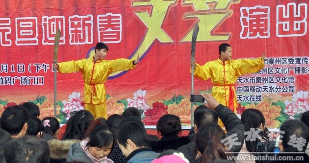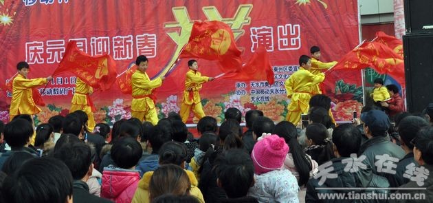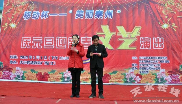 1月1日下午,由秦州區(qū)委宣傳部、秦州區(qū)文化廣播影視局主辦,秦州區(qū)文化館承辦,中國移動公司天水分公司和天水在線協(xié)辦的移動杯“美麗秦州”——慶元旦迎新春文藝演出在天水移動數(shù)碼廣場門口拉開了序幕,演出邀請了姚德明、田芳、高曉霞等多位藝術(shù)家,為觀眾奉獻了一道豐富的節(jié)日文化大餐,演出現(xiàn)場觀眾人山人海!