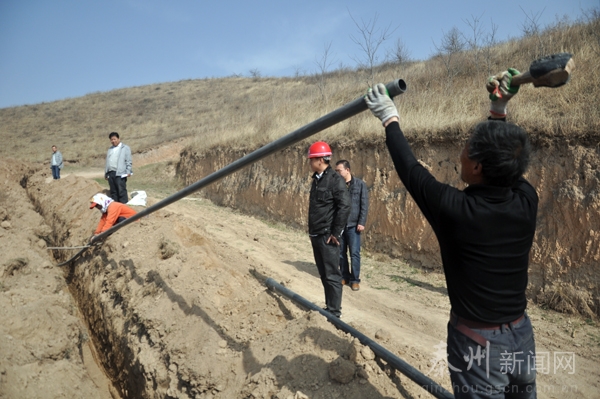 在區(qū)飲水安全服務(wù)中心主任趙永光的帶領(lǐng)下,途徑關(guān)子閆家河、藉口上寨、安集、半坡村等,來到了施工現(xiàn)場,趙永光說,主管道都要延梁走,翻山越嶺,鋪設(shè)難很大,特別有些管道通過的地方全都是石頭,要用炸藥才能鋪設(shè)管道,給施工造成了很大的困難。在高廟村,趙永光指著遠(yuǎn)處山上祈永河村說,鋪設(shè)支管要13公里,是支管通村最長的,在通水的村里面,最少的村只有8戶人。