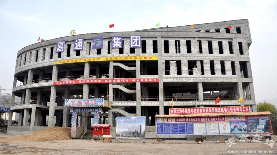 當(dāng)天,記者來(lái)到位于秦州區(qū)西十里的秦州區(qū)人民醫(yī)院異地遷建項(xiàng)目施工現(xiàn)場(chǎng),工地上砌墻、澆筑、塔吊各行其事,緊張有序。據(jù)該項(xiàng)目部黃禧源經(jīng)理介紹,秦州區(qū)醫(yī)院異地遷建項(xiàng)目是省政府為民辦實(shí)事衛(wèi)生項(xiàng)目之一,也是秦州區(qū)政府公開(kāi)承諾的“八件民生工程”之一。規(guī)劃用地72畝,目前可用地約41畝,總建筑面積約3.9萬(wàn)平方米,項(xiàng)目估算總投資1.873億元。其中一期工程為門(mén)診樓、醫(yī)技樓、住院樓,約3.4萬(wàn)平方米;二期工程為后勤保障樓、污水處理站、鍋爐房及附屬配套工程,建筑面積約5000平方米。